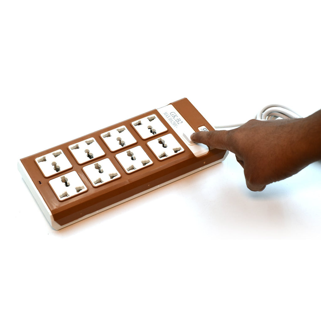 About items Durable & Ergonomic design 8 Universal sockets with Master Switch Long Heavy duty wire LED Indication for power status Robust inbuilt surge protection, Adequate spacing between sockets to accommodate
